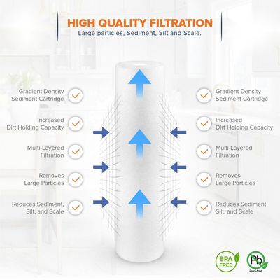 Aumente a qualidade do seu abastecimento de água com o nosso filtro de água de sedimentos de desempenho, projetado para oferecer a máxima eficiência na remoção de impurezas,Esta solução de filtragem garante que a sua água seja cristalina e livre de contaminantes indesejadosCom o nosso filtro de água de sedimentos de alto desempenho, pode confiar que cada gota é limpa, pura,e seguro para a tua família..